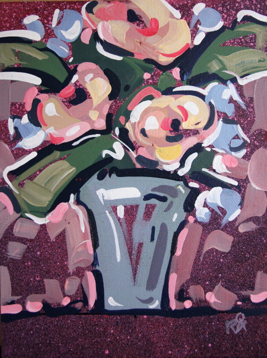 I have moved on from flowers in vases, at least for the moment. While I did them, I mixed things up with other subjects and concepts. This is more of an abstract, inspired by the more traditional flower paintings. It is good to push things.